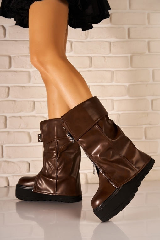 Cizme Dama cu Platforma Maro din Piele Ecologica Sargun