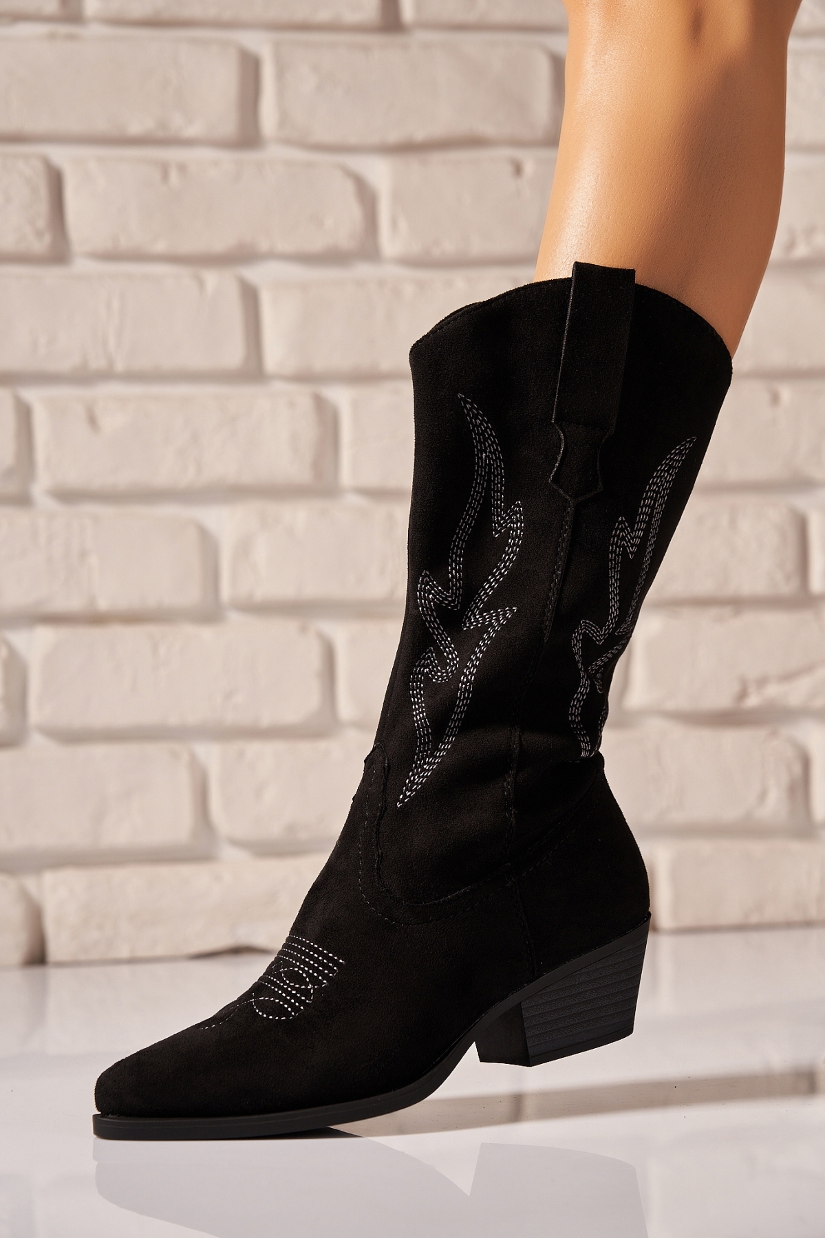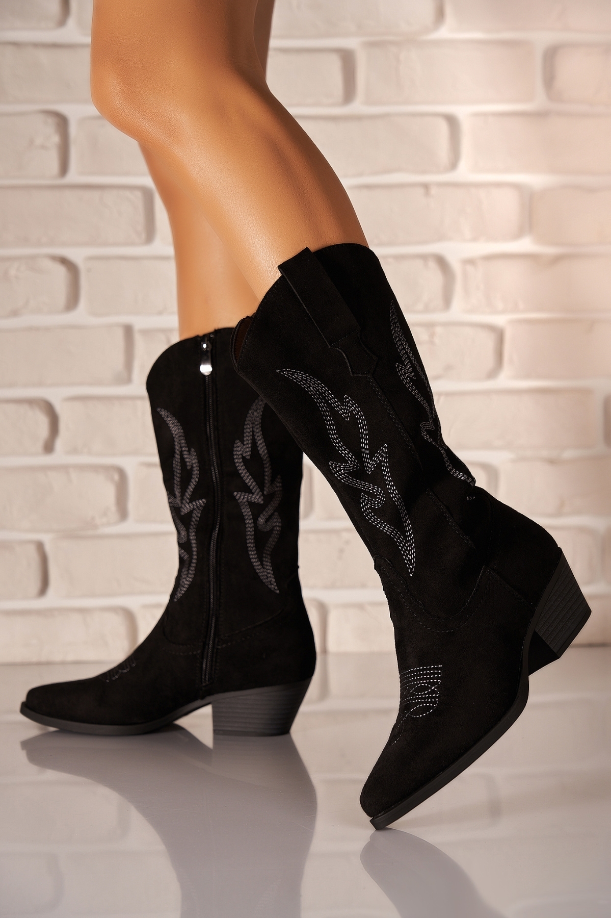 Cizme cu toc Piele Ecologica Intoarsa Negru Iwale