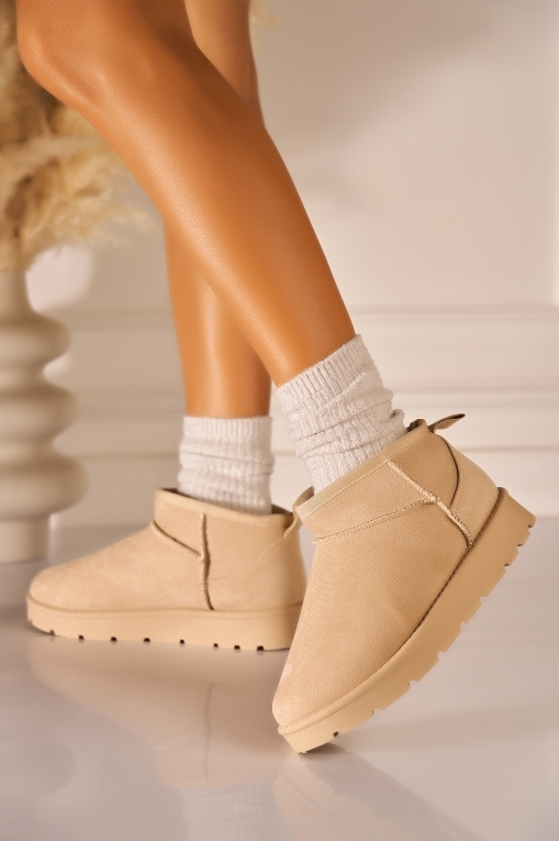Cizme Dama Imblanite Bej din Piele Ecologica Intoarsa Jazper