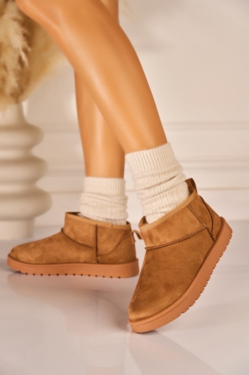 Cizme Dama Imblanite Camel din Piele Ecologica Intoarsa Keona