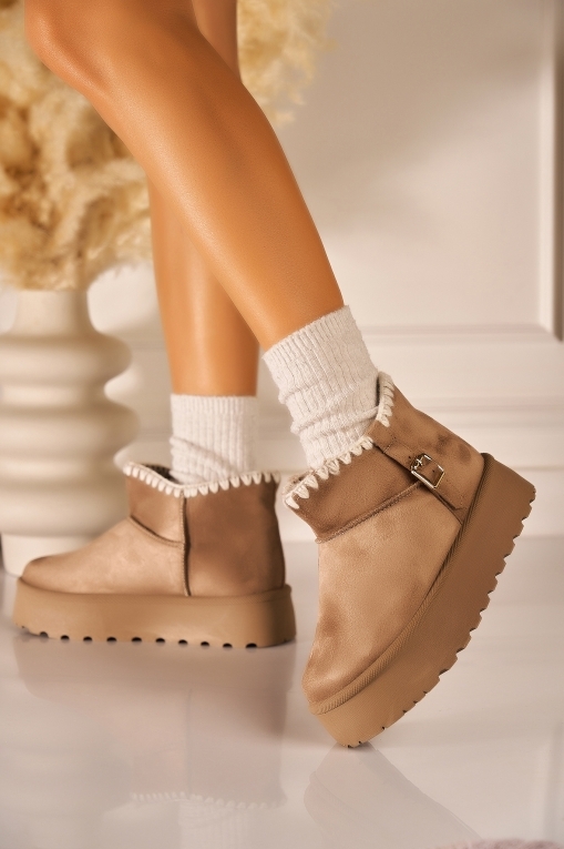 Cizme Dama Imblanite Kaki din Piele Ecologica Intoarsa Arilynn