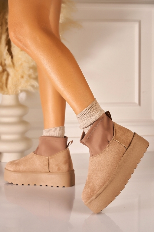 Cizme Dama Imblanite Kaki din Piele Ecologica Intoarsa Denisse